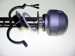 This housing is all then held in place VERY tightly with a safety clamp, with a wing nut for easy tightening.